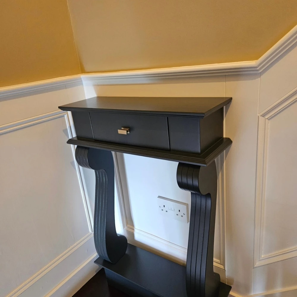 All our console tables can be customised to your requirements most can  be equipped with up to two spacious drawers featuring customisable handles, the tables offer practical storage for everyday essentials such as keys, mail, and small accessories. An open lower shelf provides an ideal platform for displaying art pieces, plants, or cherished décor items.