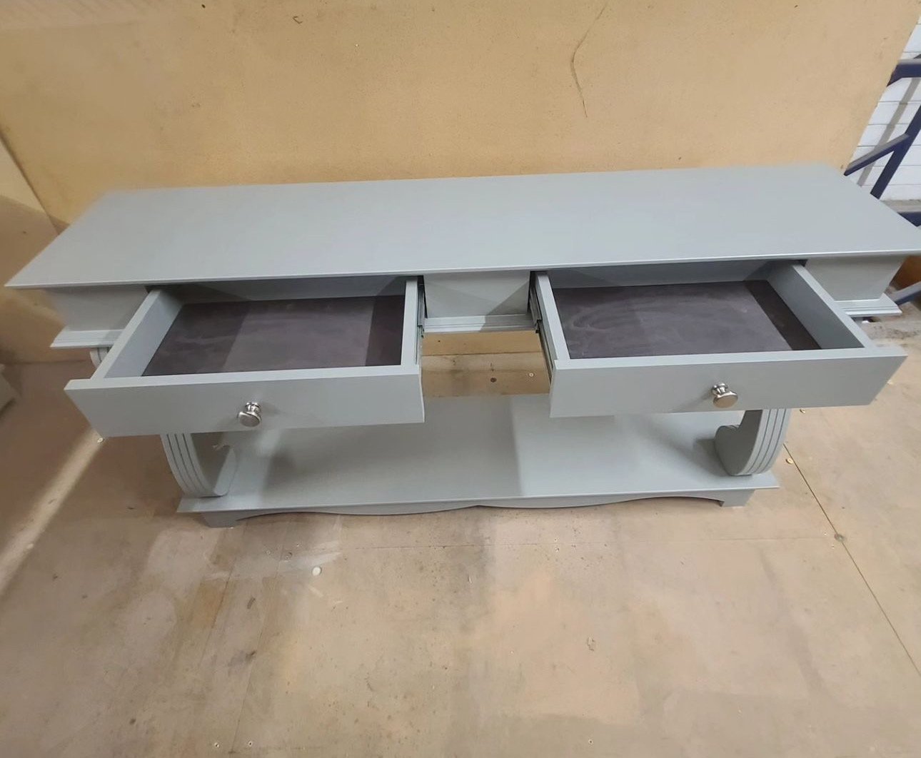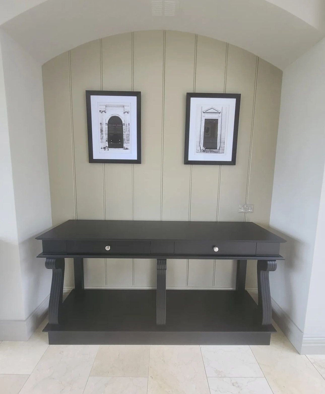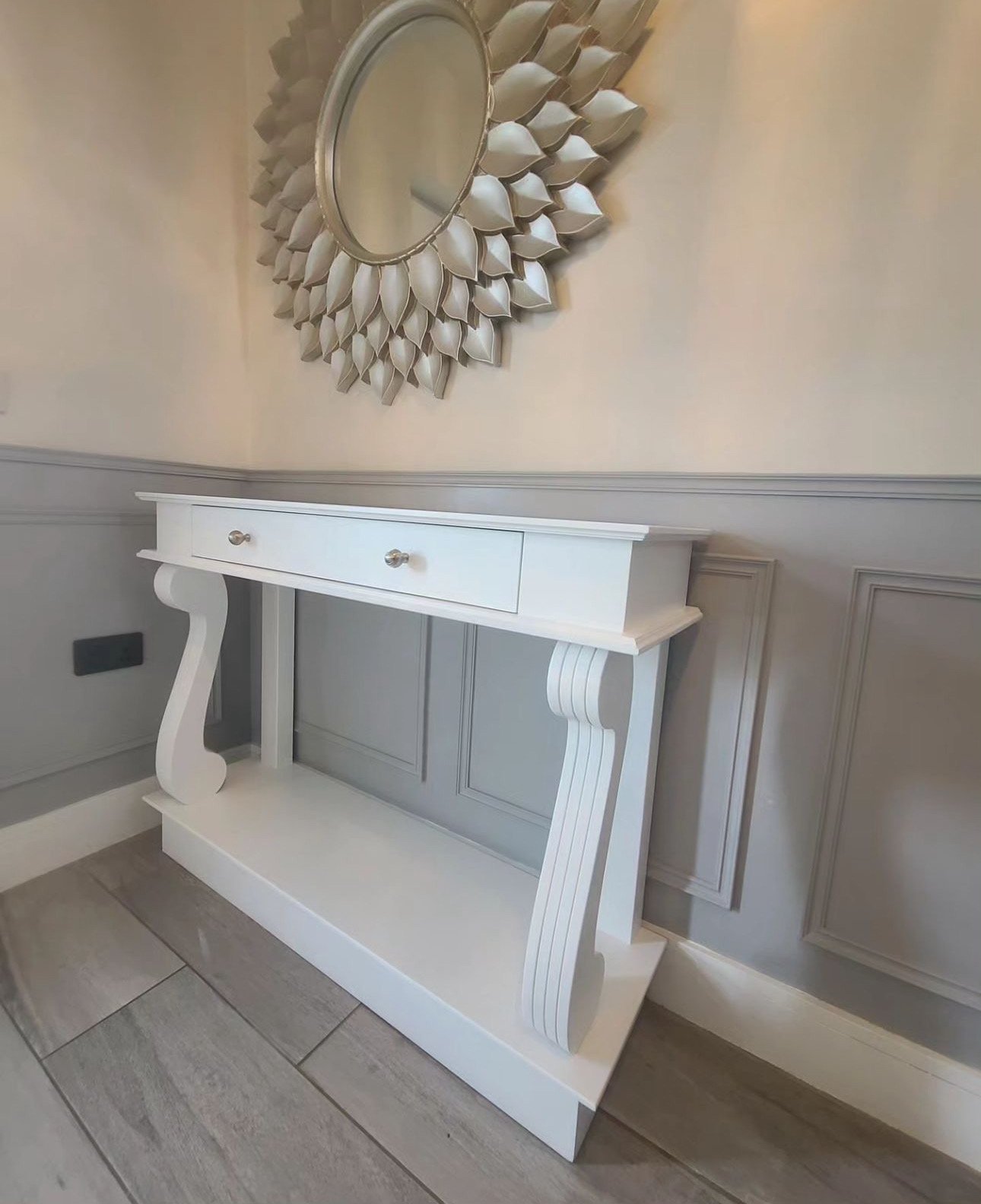 All our console tables can be customised to your requirements most can be equipped with up to two spacious drawers featuring customisable handles, the tables offer practical storage for everyday essentials such as keys, mail, and small accessories. An open lower shelf provides an ideal platform for displaying art pieces, plants, or cherished décor items.