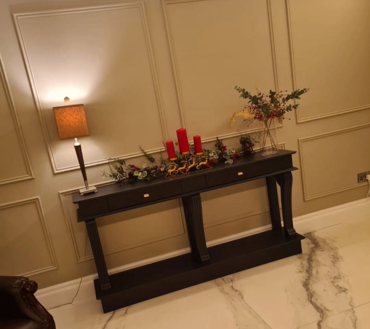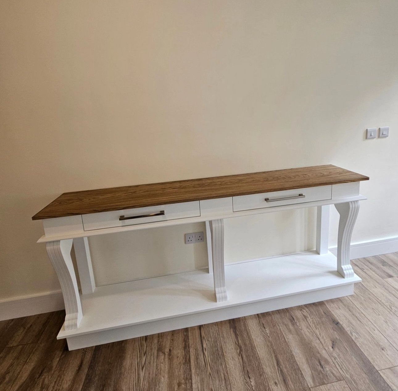 All our console tables can be customised to your requirements most can be equipped with up to two spacious drawers featuring customisable handles, the tables offer practical storage for everyday essentials such as keys, mail, and small accessories. An open lower shelf provides an ideal platform for displaying art pieces, plants, or cherished décor items.