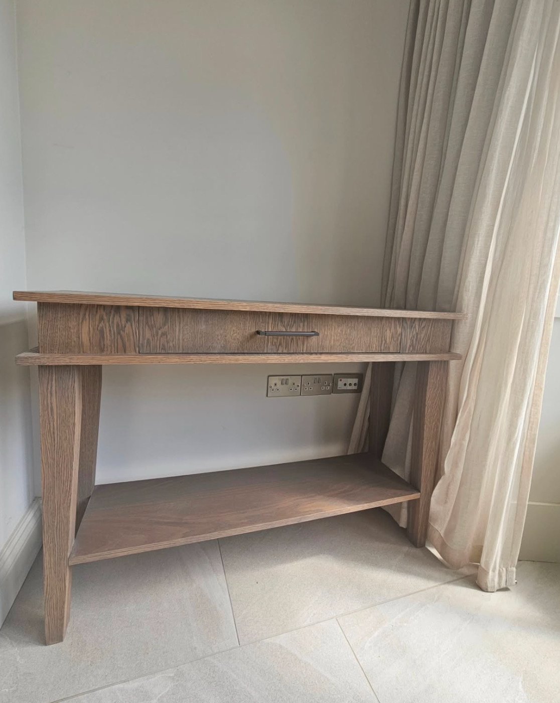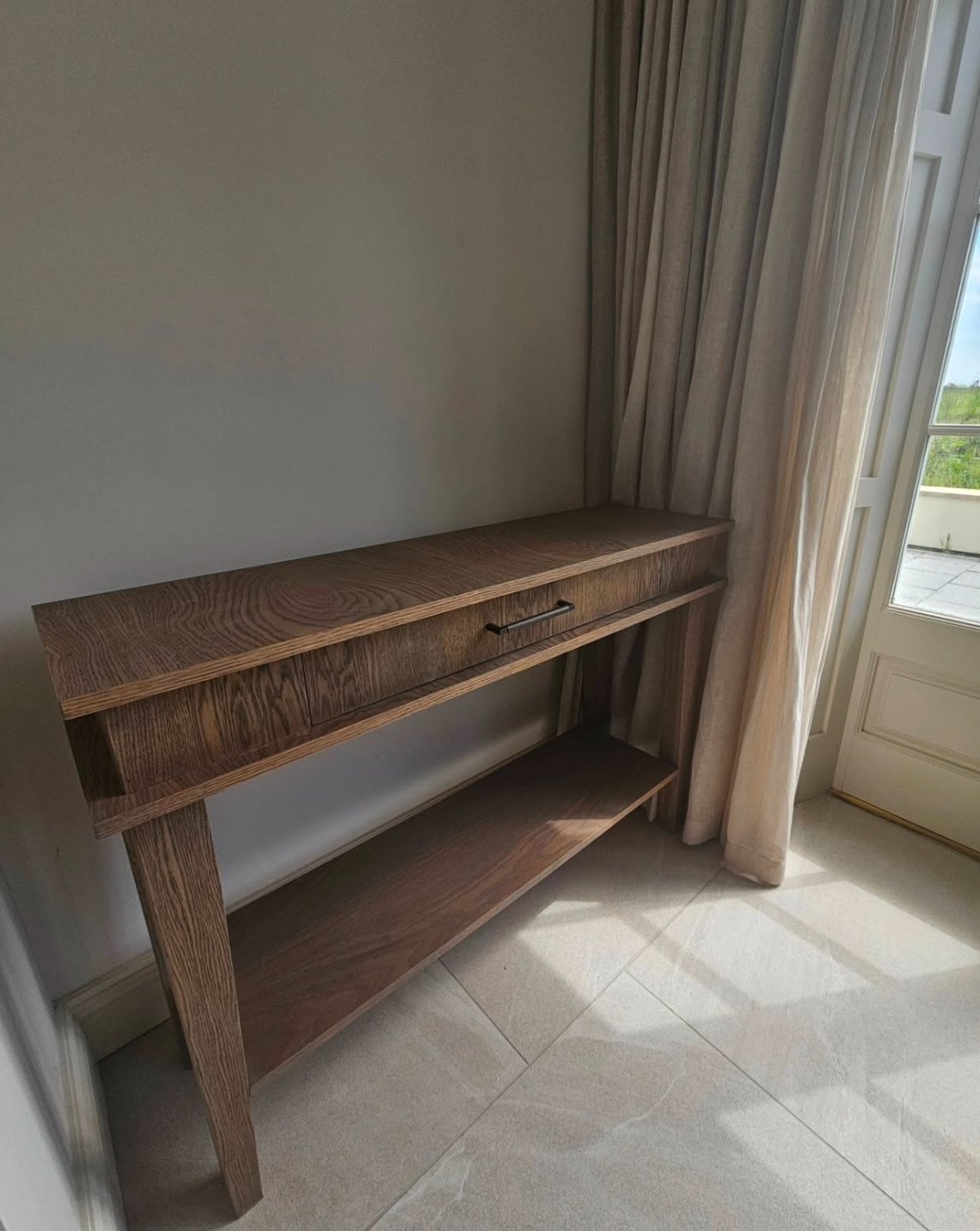 All our console tables can be customised to your requirements most can be equipped with up to two spacious drawers featuring customisable handles, the tables offer practical storage for everyday essentials such as keys, mail, and small accessories. An open lower shelf provides an ideal platform for displaying art pieces, plants, or cherished décor items.